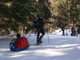couverture et autres conforts. Nous sommes dans un esprit "trappeur", avec des igloos que nous réalisons avec nos bras et pelles à neige. Il y a donc la place pour des personnes assises ou couchées,